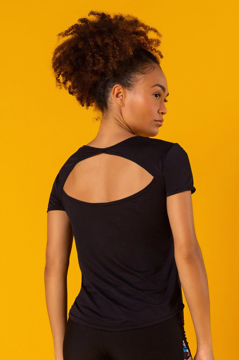 Blusa Dry Fit Manga Curta Pecia co decote redondo e abertura nas costas, silk na frente e barra arredondada.