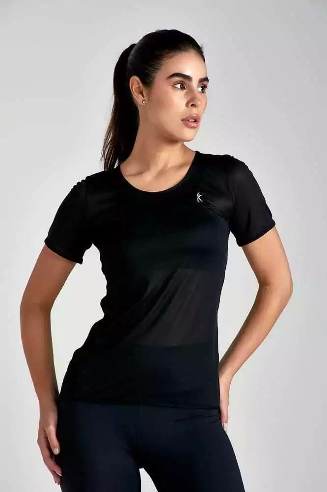 Com sua textura ultra leve e tecido levemente transparente, a peça oferece ventilação superior, reduzindo o suor e aumentando o conforto. Seu tecido fluido garante liberdade de movimento com elegância, enquanto a manutenção simplificada a torna ideal para um estilo de vida ativo. Perfeita para quem valoriza conforto, praticidade e estilo.
