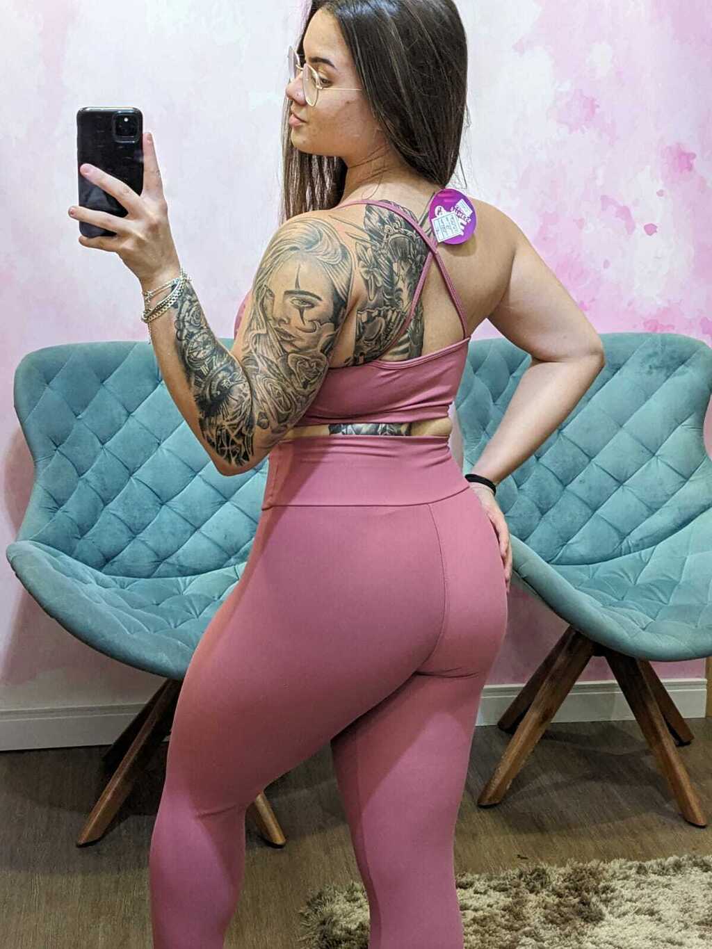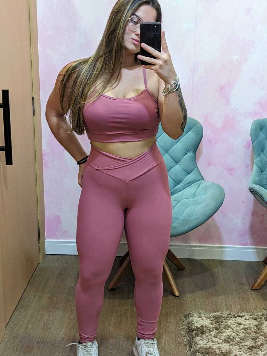 Estar confortável é essencial para um bom aproveitamento do treino. com este modelo, além do conforto, você encontra funcionalidade para compor looks arrasadores! Esse conjunto de calça legging e top básico se adequa bem ao corpo. Poliamida light