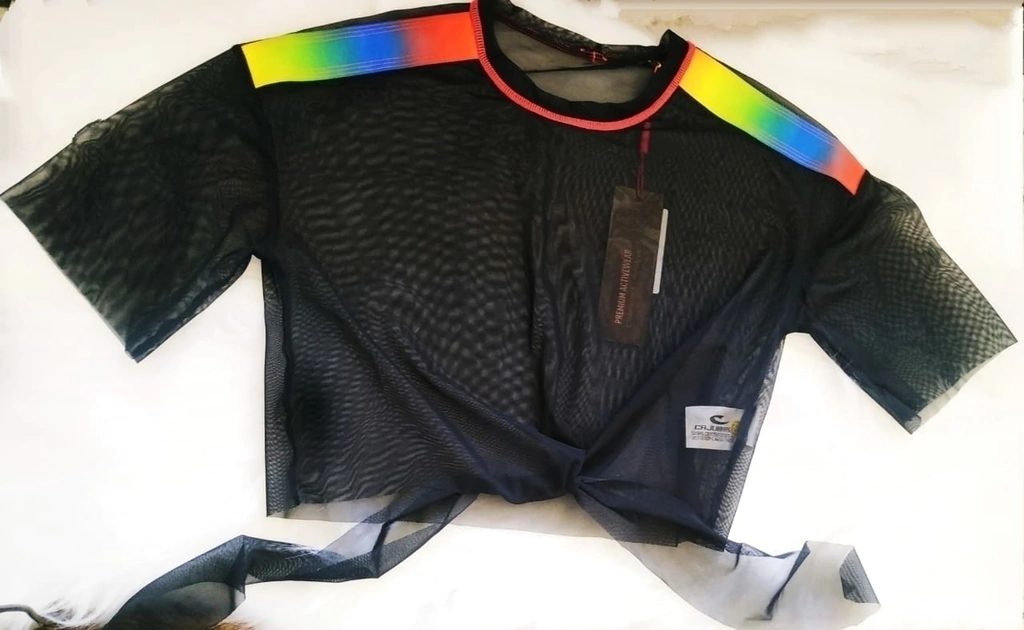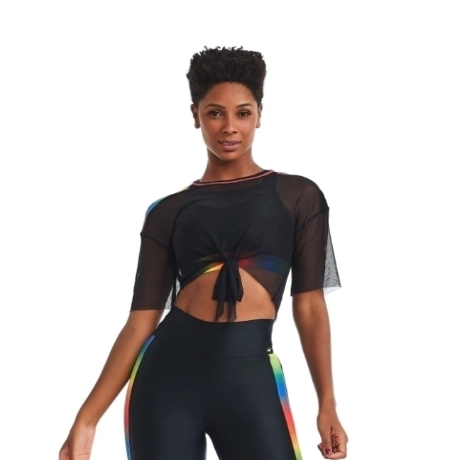 Cropped com design chic e badalado. Desenvolvido em tule de perfeita vestibilidade e o elástico colorido exclusivo garante todo o charme na peça.