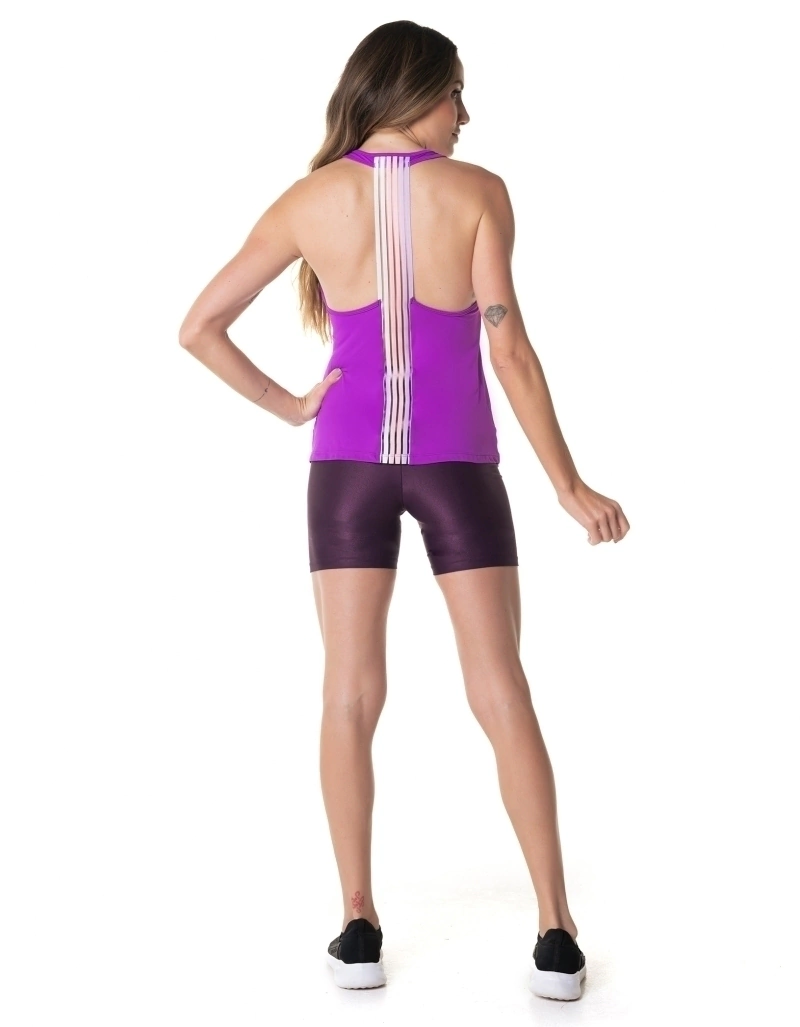 As costas com elástico contraste que proporcionam perfeito caimento ao corpo.