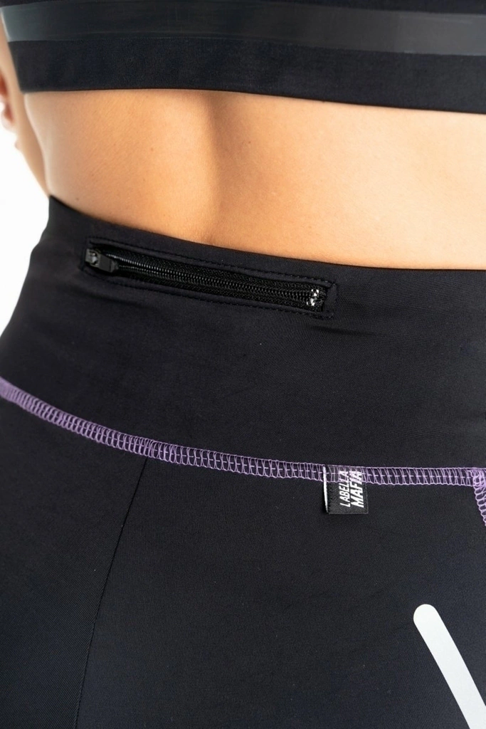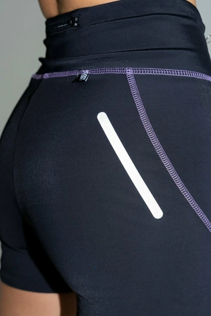 Costura aparente na cor roxa.